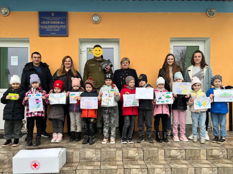 А ще малеча підготувала обереги для захисників України – дитячі малюнки та листи, які надихають, підбадьорюють та підтримують дух українських воїнів на фронті. Передали й медичні засоби: перев’язувальні матеріали, бандажі, пластирні пов’язки, засоби для обробки ран.