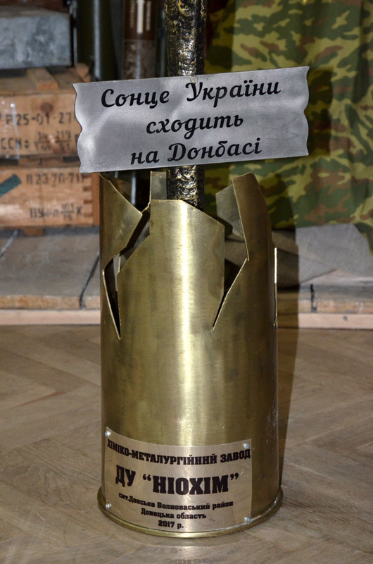 Напередодні Дня Незалежності України Волинський краєзнавчий музей отримав оригінальний подарунок від народного депутата України Ірини Констанкевич – мистецький твір «Сонце України сходить на Донбасі», придбаний відомою волинянкою на аукціоні по збору коштів на побудову православного храму в м. Волноваха Донецької області, який відбувся в Луцькому Палаці Мистецтв. Оригінальна творча робота виконана із гільз снарядів, привезених із передової російсько-української війни і виготовлена патріотами на Хіміко-металургійному заводі ДУ «НІОХІМ», смт. Донське Волноваського району Донецької області.