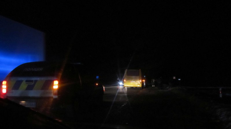 Не доїжджаючи до зупинки Сирники, помічаємо проблискові маячки поліцейського автомобіля побіля жовтого «Богдана». Зупиняємося і підходимо ближче, аби поцікавтися, що трапилося? Пояснення отримуємо відразу. Виявляється, за допомогою інших транспортних засобів заблокували авто, яке збило людину у сусідньому населеному пункті. На чорному джипі добре проглядаються перші летери номерного знака АК. Аби не заважати поліцейським у їх роботі, покидаємо місце затримання. Усе-таки часом вміють працювати стражі порядку. У даному випадку просто молодці. Злочинці не повинні уникнути покарання.