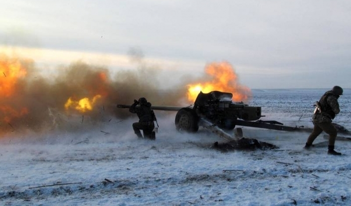 фото з порталу «Депо»: українська артилерія веде вогонь у відповідь.