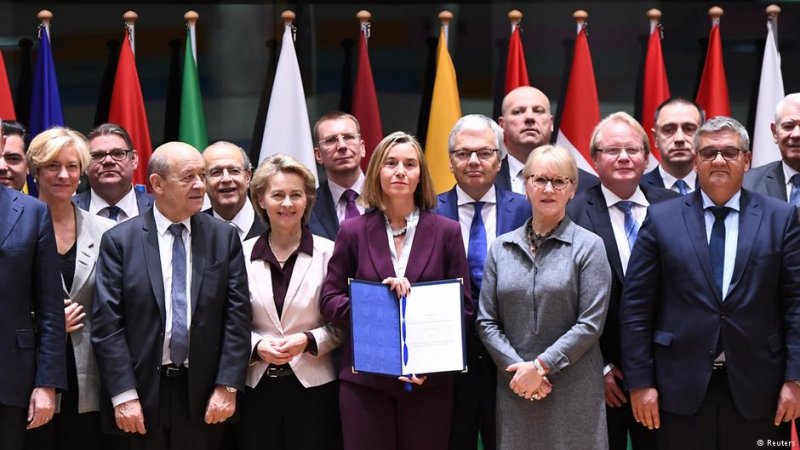 фото Агенції «Reuters»: представники 23 країн ЄС таки створили оборонну спілку PESCO.