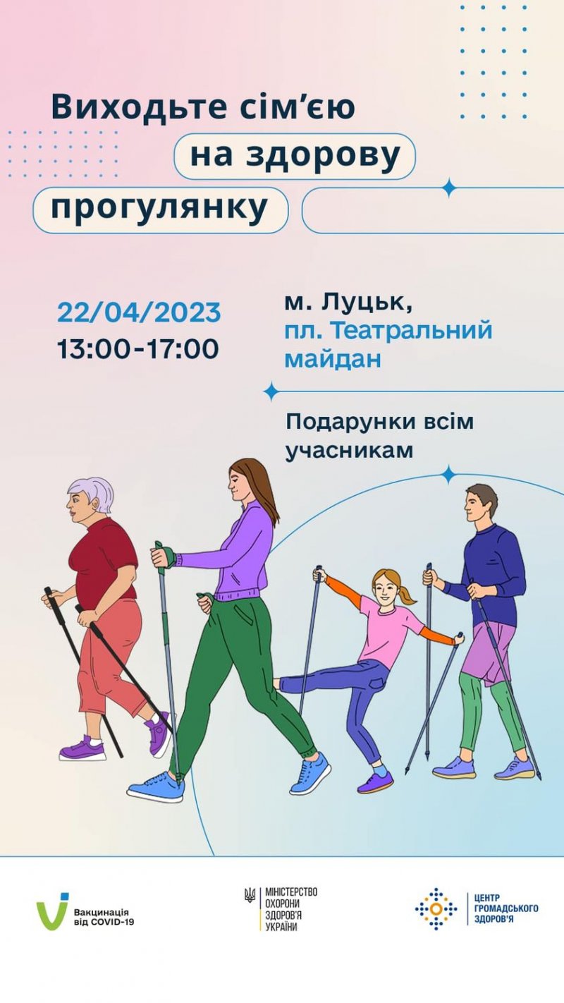 У суботу, 22 квітня, лучани та гості міста зможуть навчитися скандинавській ходьбі та перевірити своє здоров’я.