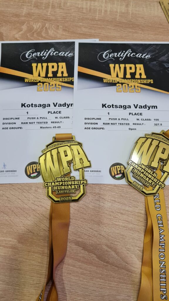 Вадим Коцага, попри два нещодавні оперативні втручання, продемонстрував надзвичайну силу духу та витримку. У дисципліні Push & Pull (двоборство) у ваговій категорії до 100 кг він виборов два перших місця — серед чоловіків 45–49 років та у відкритій віковій групі, показавши результат 327,5 кг!