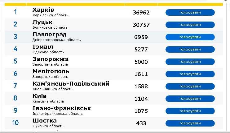 голосування за вибір найпривабливішого і найбільш впізнаваного міста України у