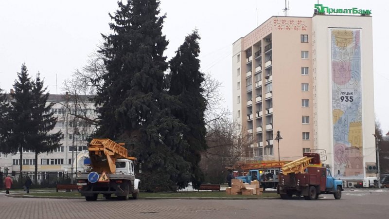 Театральному майдані міста розпочалися роботи по оформленню головних ялинок