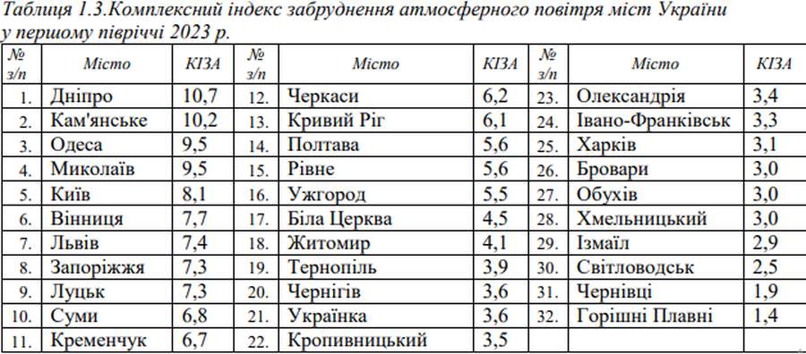 Серед найзабрудненіших міст – Дніпро(10,7), Кам’янське (10,2), Одеса і Миколаїв – 9,5.