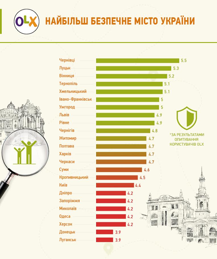 виявився найбезпечнішим, обійшовши й Одесу, і Дніпро, які отримали по 4,2 бала.