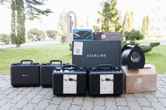 Так, для потреб військової частини А4100 передали два квадрокоптери DJI Mavic 3 Enterprise та два квадрокоптери DJI Mavic 3 Enterprise (Thermal), три тепловізійні приціли ATN MARS LT 320 2-4x, два супутникові модеми Starlink, два пошукових прожектори Bandera та дві потужні лазерні указки YX-B015 з насадками.