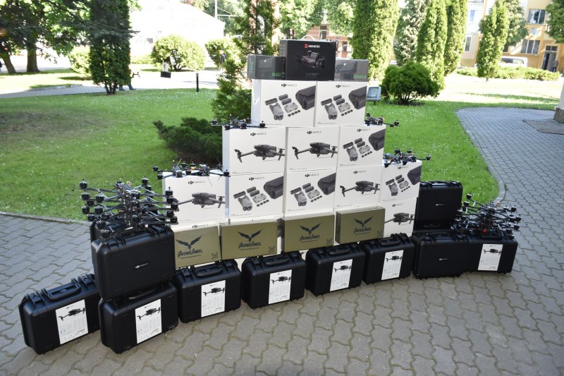 Першому штурмовому батальйону військової частини А 0501 передаємо десять квадрокоптерів DJI Mavic 3 FlyMoreCombo, п’ять квадрокоптерів DJI Mavic 3T, по 25 штук FPV 7 дюймів та FPV 10 дюймів.