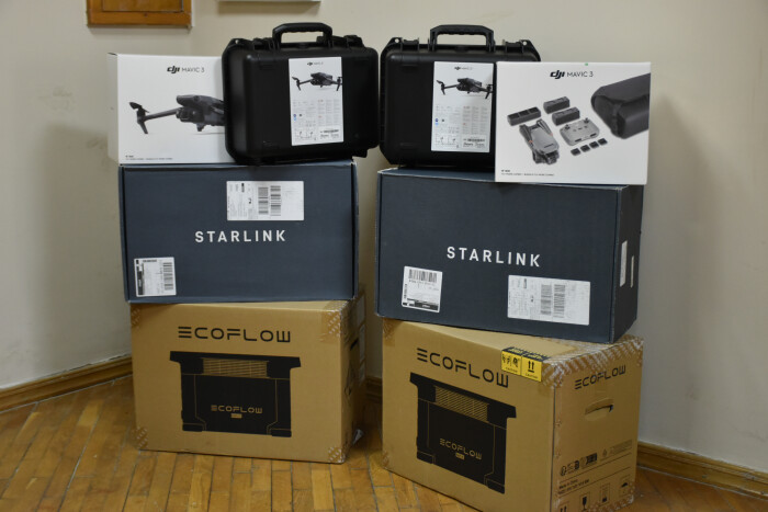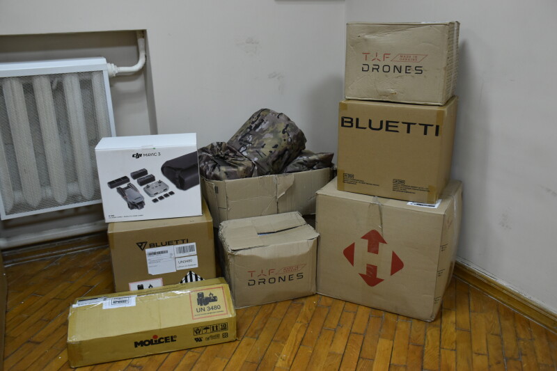 Допомогу отримали й представники військової частини А4718. Їм міська рада передала 20 FPV-дронів, один квадрокоптер DJI MAVIC 3 Flymorecombo, дві зарядні станції Bluetti та 10 антитепловізійних плащів-пончо.