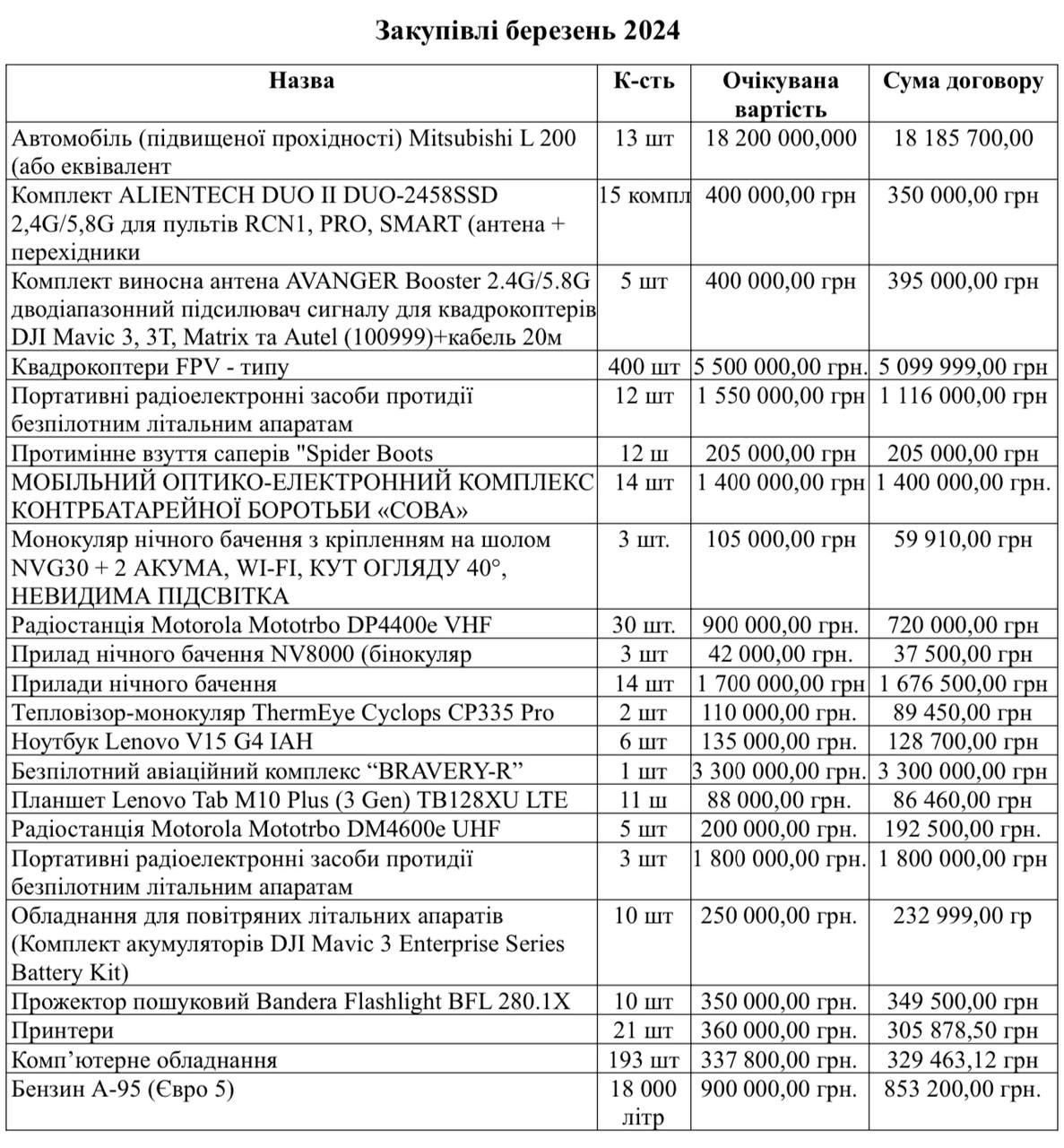 Звіт по закупівлях для ЗСУ за березень опублікував Луцький міський голова Ігор Поліщук у своєму Телеграм-каналі.