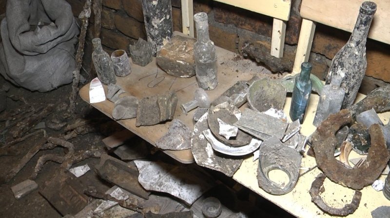 Розчищати підземелля допомагають студенти-історики місцевого університету. Нині вони знімають ґрунт в одній з кімнат, аби вийти на рівень первісної підлоги. Серед сміття, знаходять артефакти, – розповідає студент Мирослав Зінчук. Каже: найбільше кераміки та цегли, що датуються різними століттями. Раніше, каже студент, знаходили цеглини з надписами – «Лондон», «Париж», «Прима», «Прага».