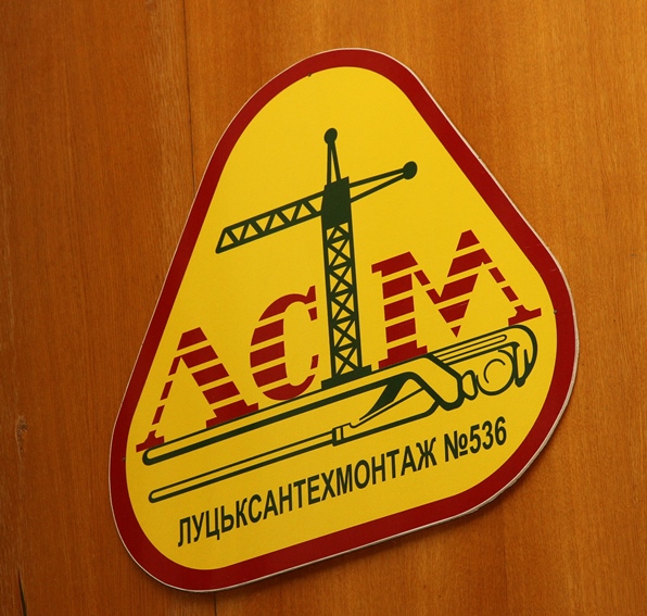 На фото Петра КРИВОШЕЯ: логотип ПАТ «Луцьксантехмонтаж №536».