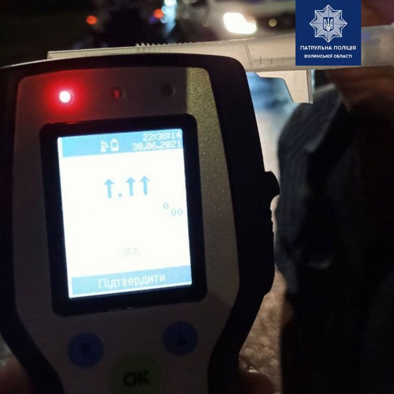 Огляд на визначення стану сп’яніння кермувальник пройшов на місці події у присутності двох свідків. Результат — “стрілки в небо”, що становить максимальну позначку на алкотестері — 5 проміле (перевищення у 25 разів).