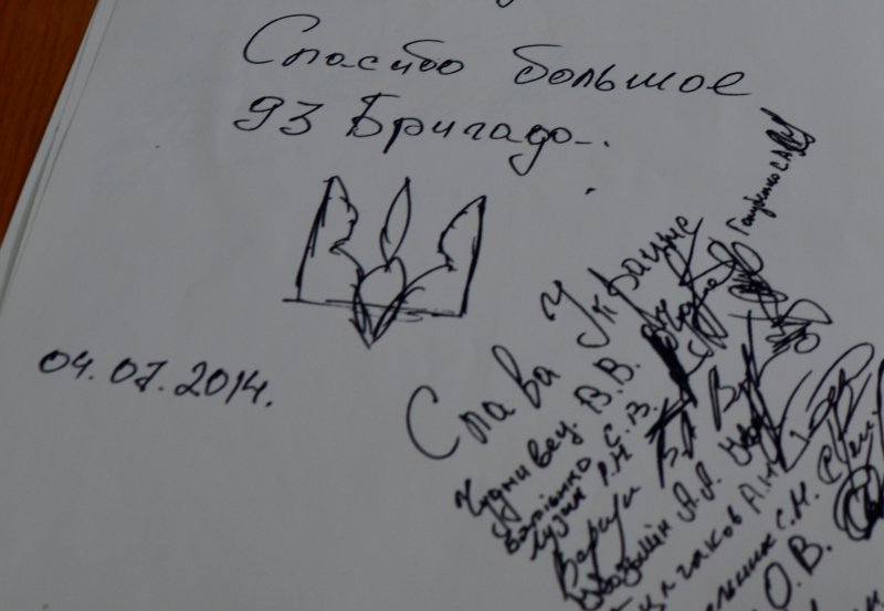 «…Мы их возьмем с собой домой после победы. Спасибо, что вы верите в нас. Мы стараемся добросовестно нести свою службу. Мы будем счастливы, когда чистое небо будет над вашими головами всегда… Солдаты взвода ВМТЗ реактивного дивизиона 93 бригады».