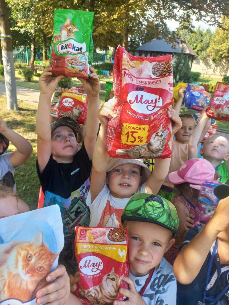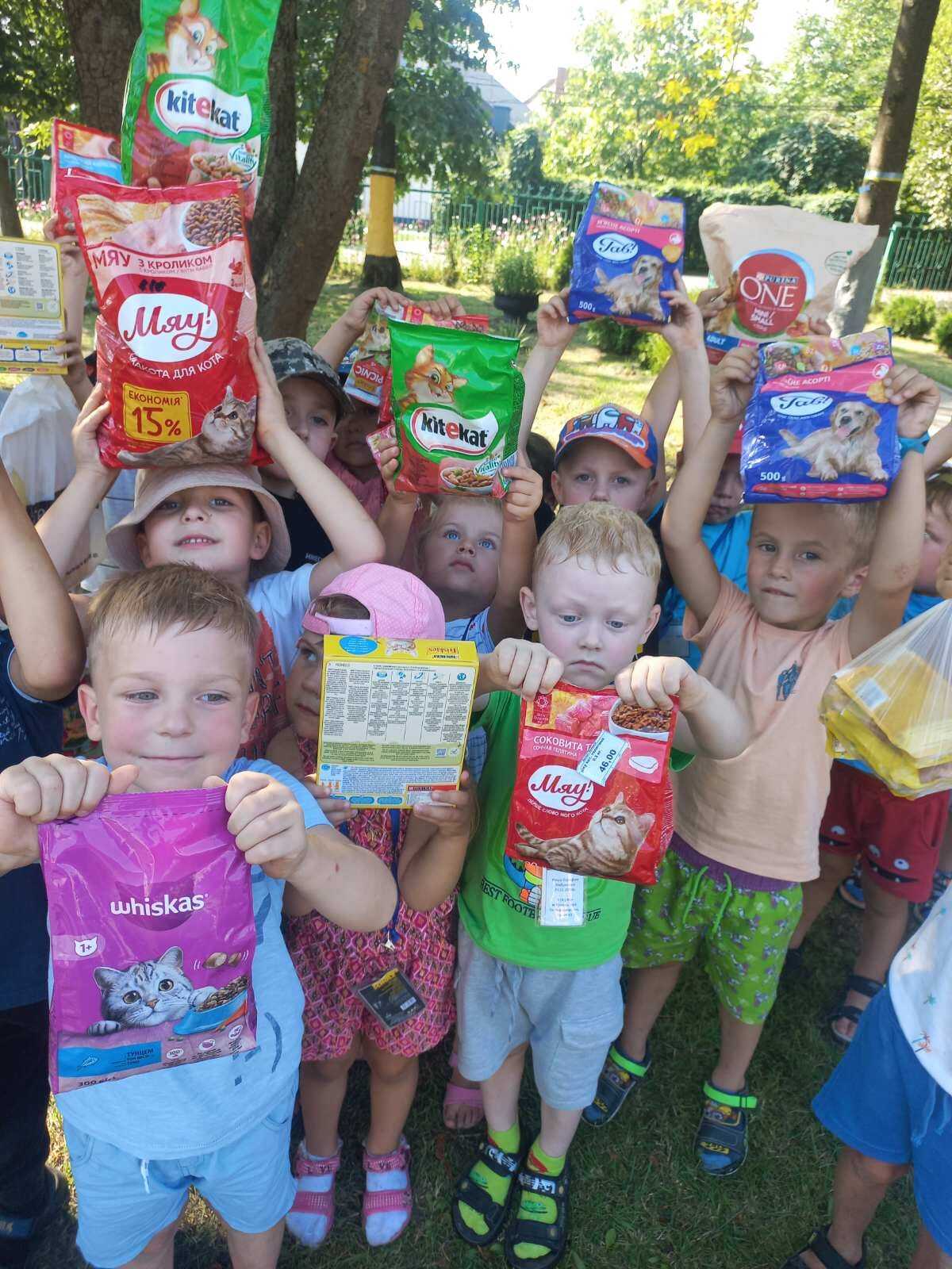 Малеча принесла різноманітний корм для друзів наших менших.
