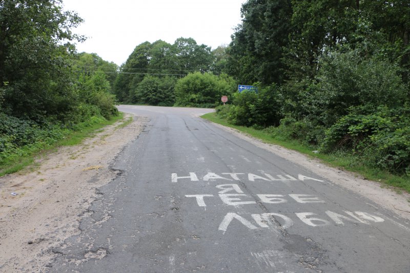 прямо на асфальту дорои, яка виводить із села на трасу Шацьк-Піща…