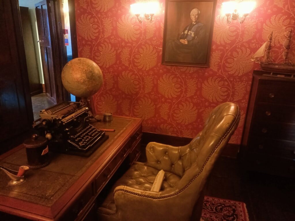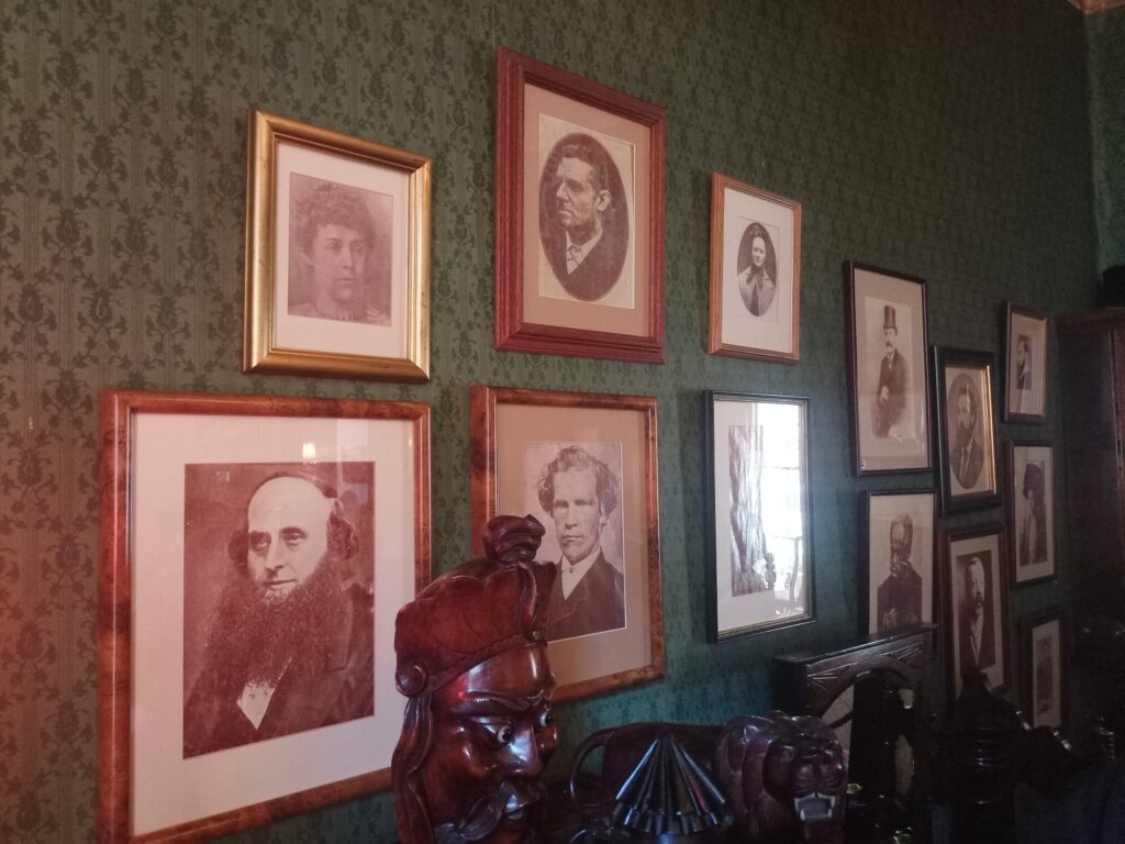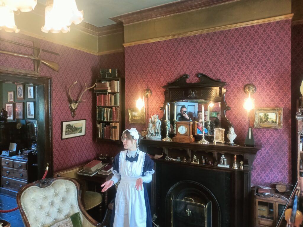 Втім, екскурсоводи працюють тільки в двох кімнатах на першому поверсі, де невеликий передпокій. Тут чимало історичних експонатів тієї епохи, і навіть вибиті кулями початкові букви монограми королеви Вікторії – «VR», які, за переказами, детектив вистріляв з револьвера.