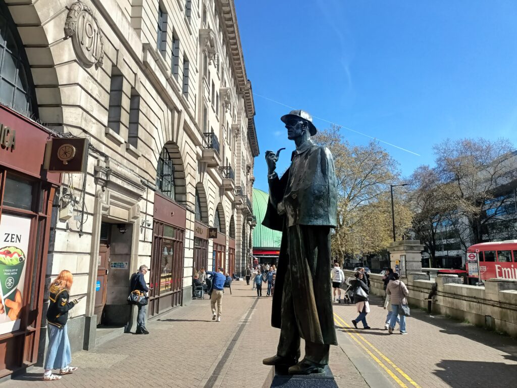 Навіть станція метро тут прикрашена зображенням Шерлока Холмса. А прямо біля її виходу – пам’ятник легендарному приватному детективу.