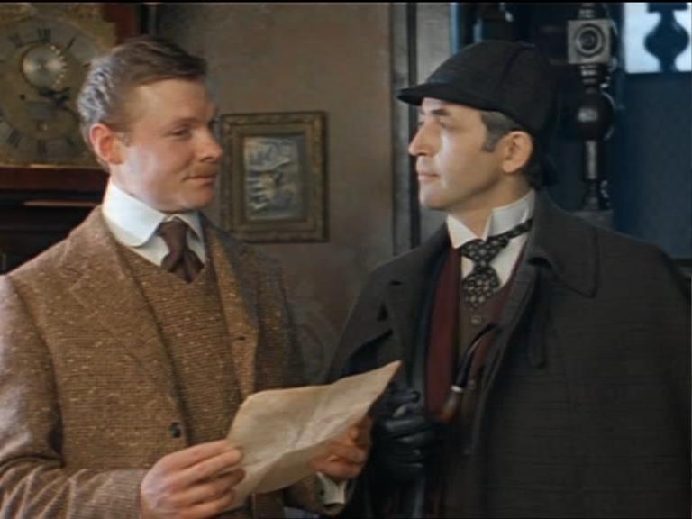 В ньому і є параграф про «Пригоди Шерлока Холмса і доктора Ватсона», знятий у далекому 1979 році. Незважаючи на всі комуністичні заборони, творча група зробила чудову роботу, і він став чи не найкращим із-поміж усього кіноматеріалу на цю тему. Особливо імпонує гра киянина Борислава Брондукова, який чудово зіграв роль прямолінійного, але чесного поліцейського інспектора Лестрейда.