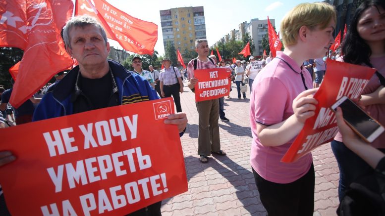 з ініціативи президента РФ Владіміра Путіна «пенсійної реформи», яка примушує осіб літнього віку працювати на 5 років довше.
