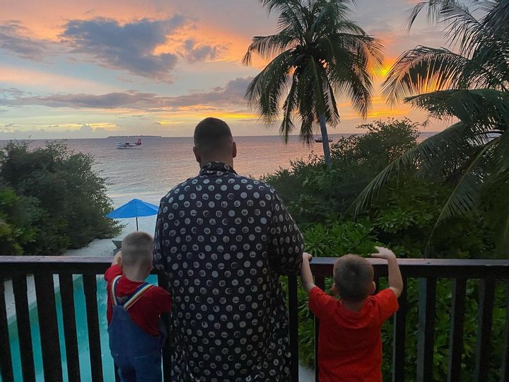 Хлопці, як і їхній батько, позують спиною до камери. Зірковий татусь поки не