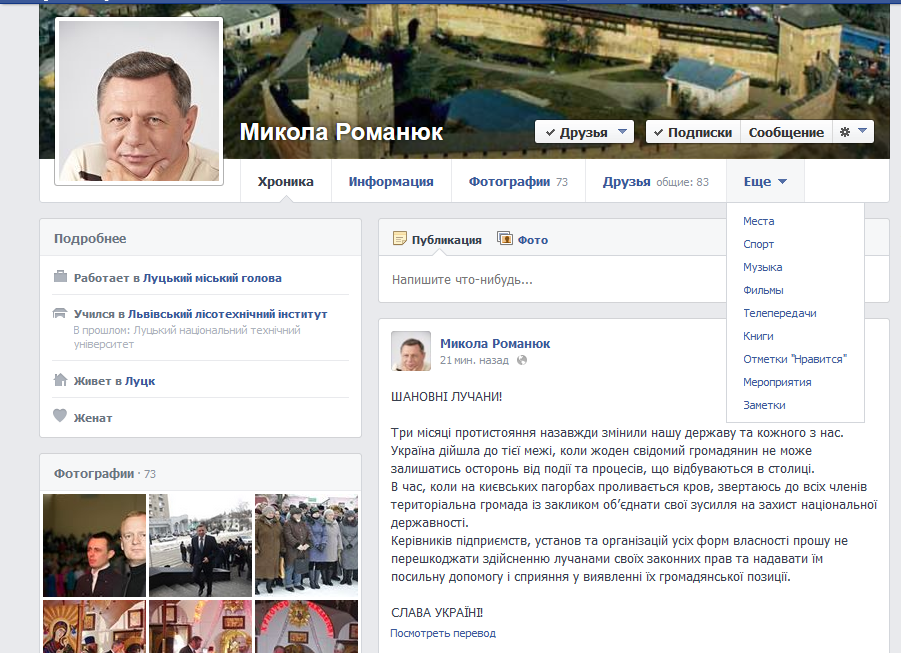 Зокрема, у зверненні до громади Микола Ярославович зазначив: «ШАНОВНІ ЛУЧАНИ! Три місяці протистояння назавжди змінили нашу державу та кожного з нас. Україна дійшла до тієї межі, коли жоден свідомий громадянин не може залишатись осторонь від події та процесів, що відбуваються в столиці. В час, коли на київських пагорбах проливається кров, звертаюсь до всіх членів територіальна громада із закликом об’єднати свої зусилля на захист національної державності.