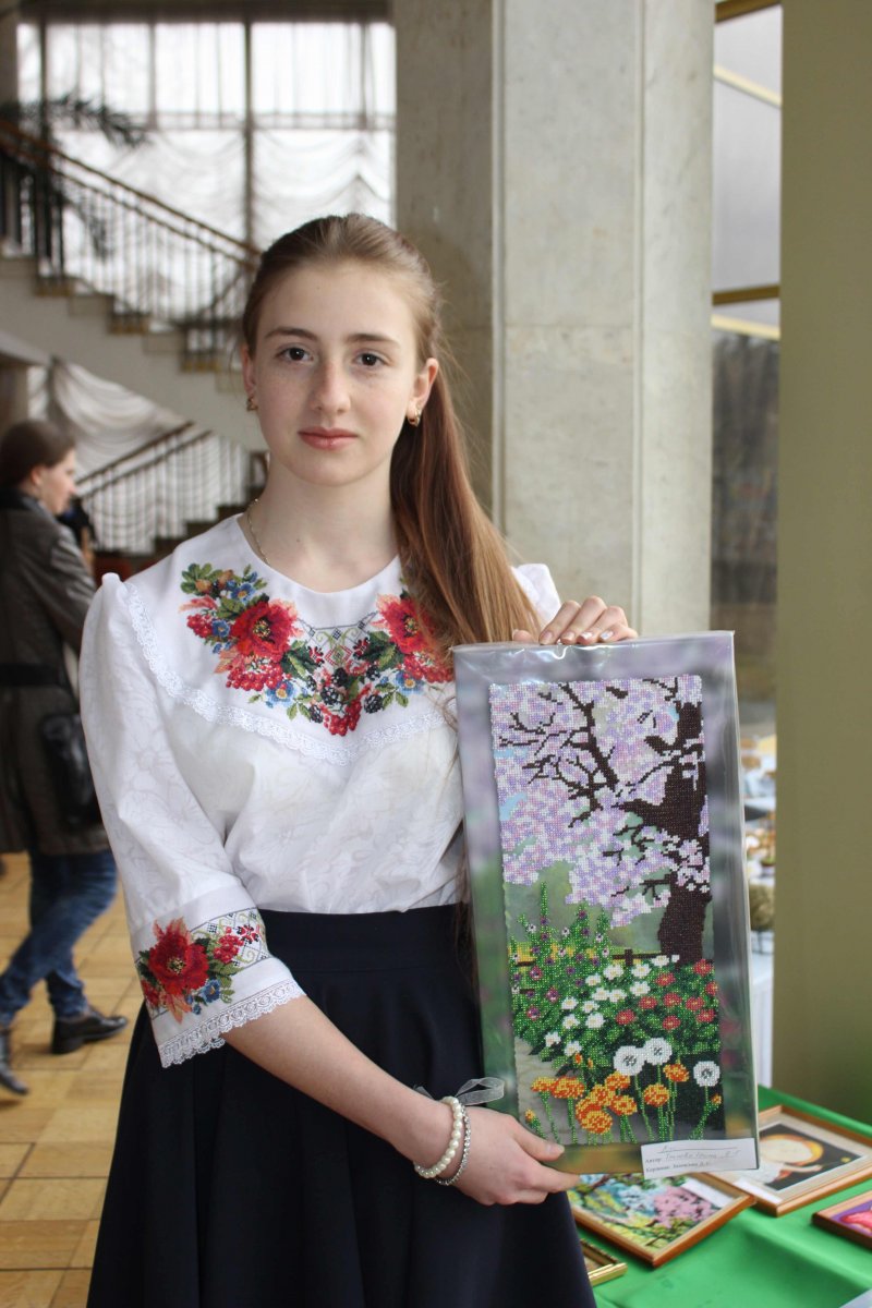 «Вишивка – це втеча від негативу: особистого і загальносуспільного. Є люди, яких вишиття дратує, запитують мене: «Як ти витримуєш?». Даю відповідь, –«Нерви відпочивають, коли руки трудяться, а тіло набирається сил, коли працює голова». Таке захоплення прийшло до мене несподівано, – розповідає дівчина. – Півтора роки тому, навчаючись у дев’ятому класі, мені довелося познайомитися з мистецтвом вишивання бісером. Спочатку це здалося складним, але викладач з трудового навчання показала нам основи техніки вишивання, і це заняття мене захопило».
