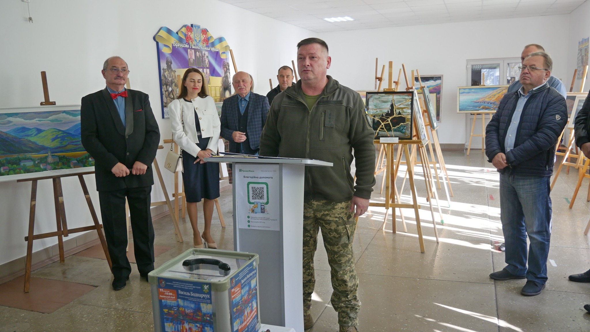 Підтримали ідею військових і організували аукціон Павлівська громада і Львівська Національна Академія мистецтв. Лоти для благодійних торгів – свої авторські роботи – надав доцент кафедри художньої кераміки цього мистецького вишу, Заслужений художник України Василь Боднарчук. Серед його доробку не лише традиційне малярство, але й кераміка. Не «горщики», як зауважує сам автор, а абсолютно осібний вид мистецтва – поєднання на глиняній площині об’ємної пластики, графіки та живопису. Із 40 робіт, які представив художник, 10 взяли участь в аукціоні і були придбані.