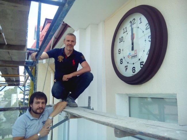 монтаж нашого третього годинника у Луцьку, на фасаді міської ради. Годинник від
