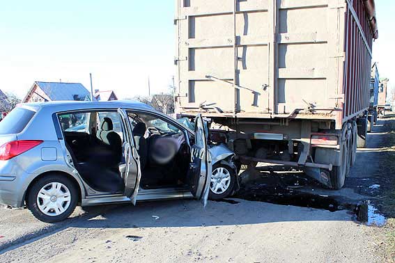 відкинуло під вантажний автомобіль, який стояв обабіч дороги.