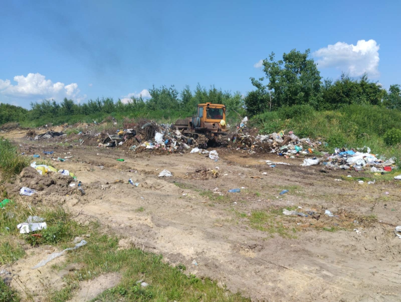 З початку цього року у всіх селах громади за допомогою спецтехніки проводяться роботи з підгортання сміттєзвалищ. На нинішній час роботи з облаштування сміттєзвалища проводяться в с. Здомишель.