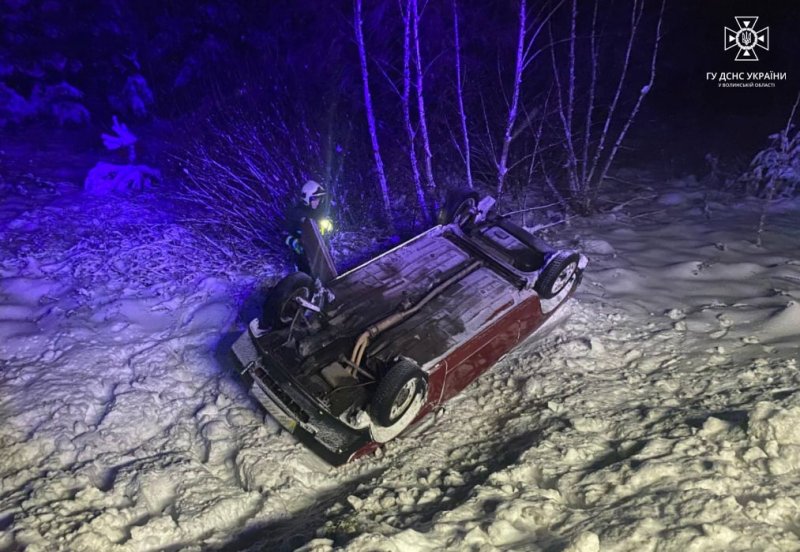 13 грудня уночі на трасі М-07 «Київ-Ковель-Ягодин» біля села Мар’янівка Ковельського району злетів у кювет легковий автомобіль й перекинувся на дах.