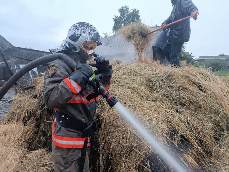Учора зранку у селі Хотешів Камінь-Каширського району внаслідок розряду блискавки сталася пожежа навісу для зберігання сіна.