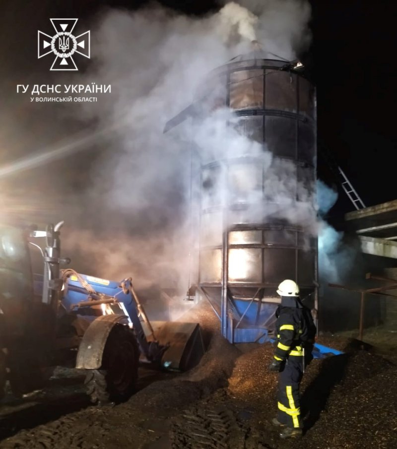 повідомлення про пожежу зерносушарки. До місця події виїхали рятувальники 4-ї