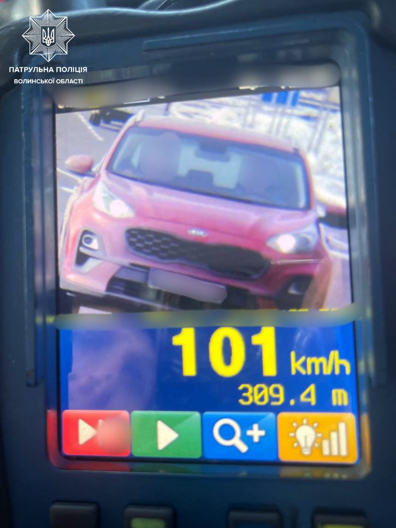 Учора патрульні контролювали швидкісний режим за допомогою лазерного вимірювача TruCAM на автодорозі поблизу села Дерно. Близько 14-ї години прилад зафіксував, що автомобіль марки KiaSportage в межах населеного пункту рухається зі швидкістю 101 км/год.