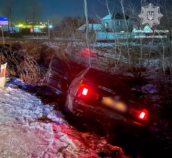 На Волині п’яний водій заїхав в кювет