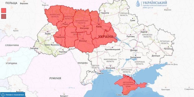 Окрім того, у зоні підвищеної пожежної небезпеки також Рівненська, Тернопільська, Хмельницька, Житомирська, Вінницька, Київська, Черкаська області та Крим.