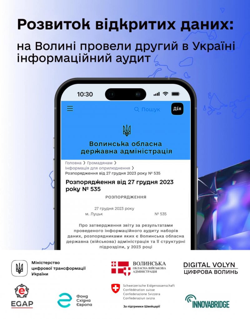 Волинська обласна військова адміністрація провела другий в Україні інформаційний аудит відкритих даних за оновленою методикою Міністерства цифрової трансформації України.
