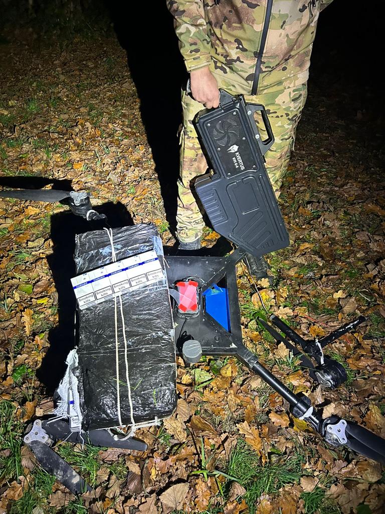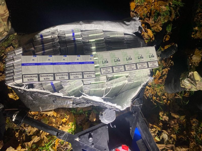 Квадрокоптер з підвішеним пакунком прикордонний наряд виявив за допомогою радіолокації та приземлив антидроновою рушницею. В ході огляду охоронці кордону з’ясували, що безпілотником контрабандисти намагались доставити до сусідньої країни 540 пачок сигарет без акцизних марок.