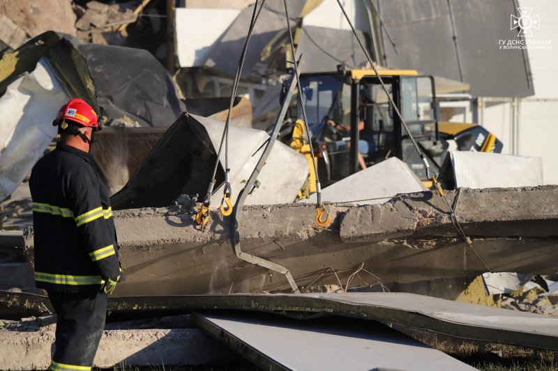 Уранці 15 серпня під ворожий обстріл потрапило виробниче підприємство у Луцьку. В результаті відбулося руйнування конструкцій та виникла пожежа. Як інформують у ГУ ДСНС України у Волинській області, з-під завалів рятувальники деблокували одного постраждалого та вилучили тіла ще трьох загиблих. Силами рятувальників за допомогою інженерної техніки ДСНС здійснено розбір завалів. Також вогнеборці ліквідували пожежу.