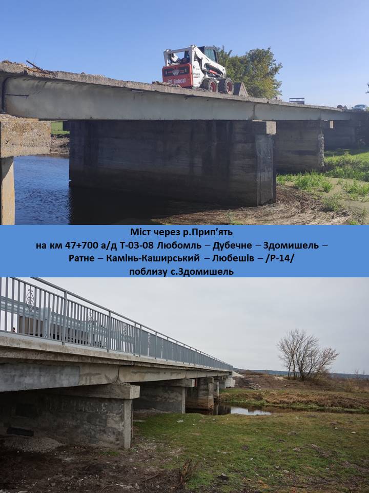 Упродовж жовтня-грудня минулого року на замовлення Служби автомобільних доріг у Волинській області проведено комплекс робіт з відновлення цієї штучної споруди, завдовжки понад 68 метрів. Зокрема, укріплено відкоси мосту, замінено гідроізоляцію, встановлено нове бар’єрне та перильне огородження, відновлено дорожнє покриття тощо.