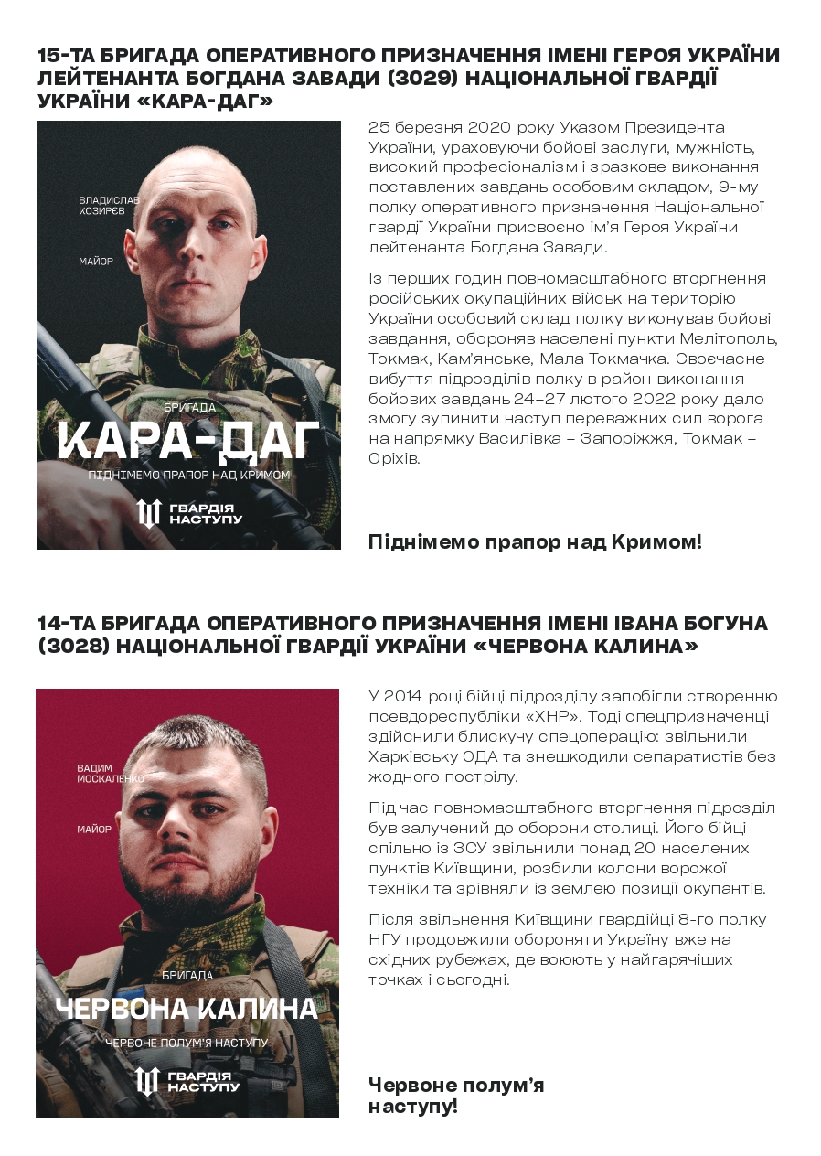 Це штурмові бригади МВС, які звільнятимуть місто Донецьк, Луганськ та інші окуповані території разом з Кримом. Кожен обирає свою та гарантовано потрапляє до однодумців.