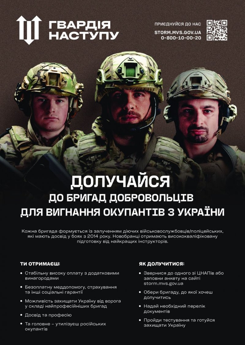 Детальнішу інформацію щодо вступу до бригад можна отримати також за номером телефону: 0 800 10 00 20.