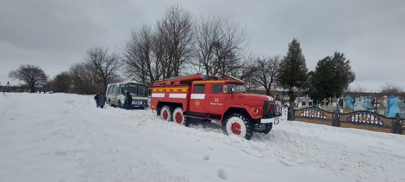 Черговий підрозділ 22-го Державного пожежно-рятувального поста міста Берестечко за допомогою пожежного автомобіля витяг автобус з снігового замету та відновив рух дорогою іншим автівкам.