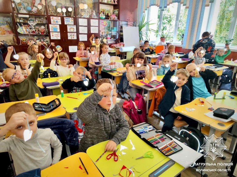 Днями патрульні разом із працівниками бібліотеки для юнацтва завітали до однієї зі шкіл Луцька, де провели майстер-клас з виготовлення світлоповертальних елементів. Разом вони майстрували флікери-брелоки, які допоможуть їм стати помітнішими у темну пору доби.