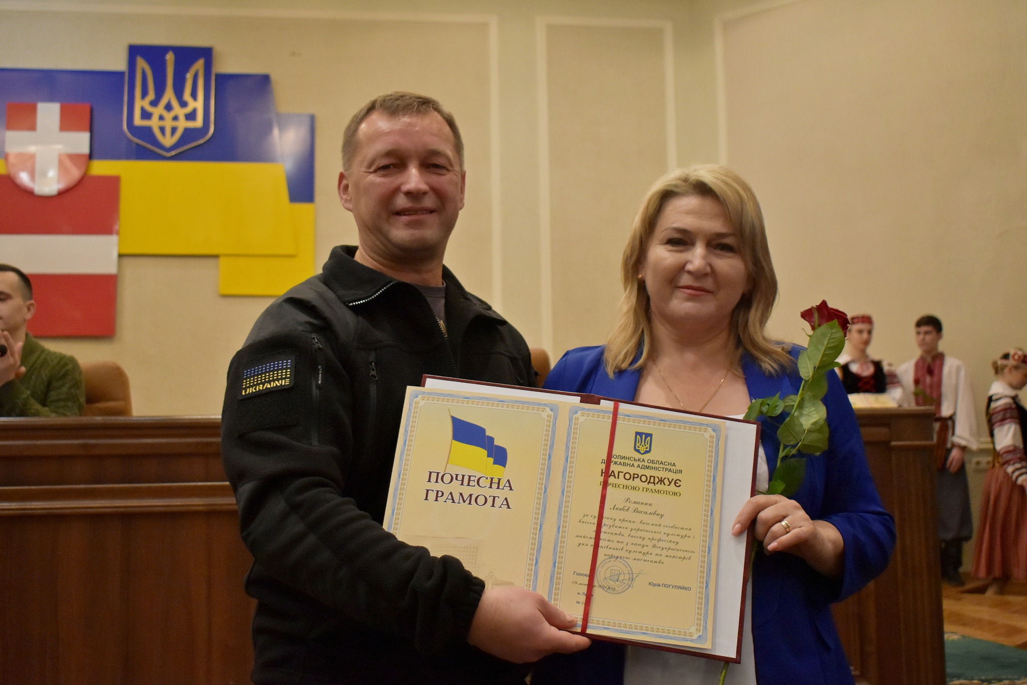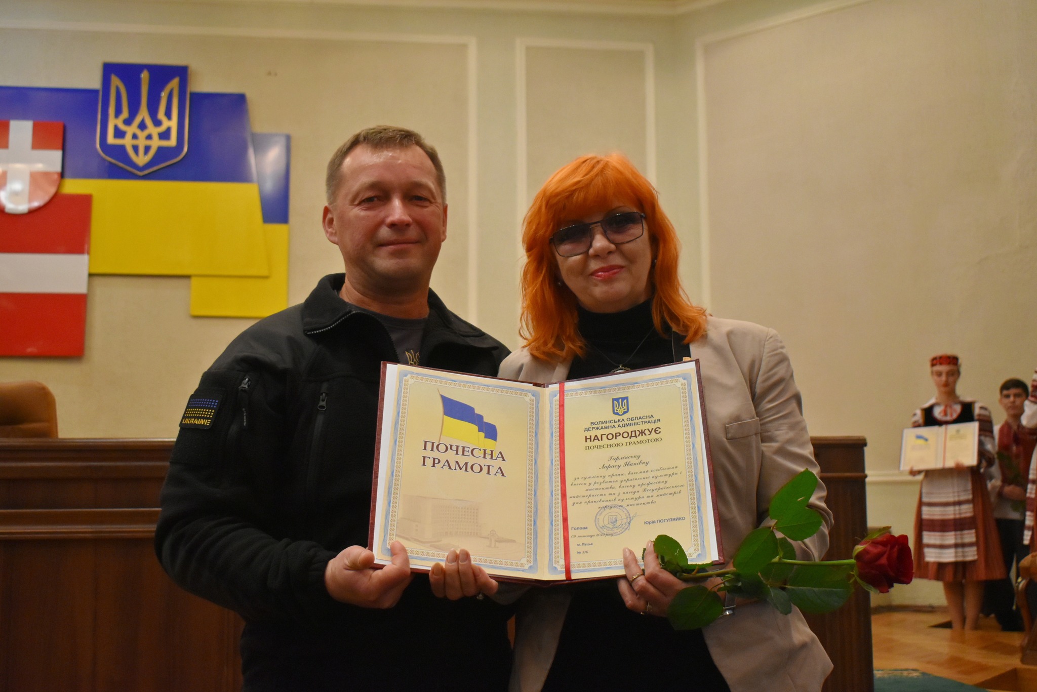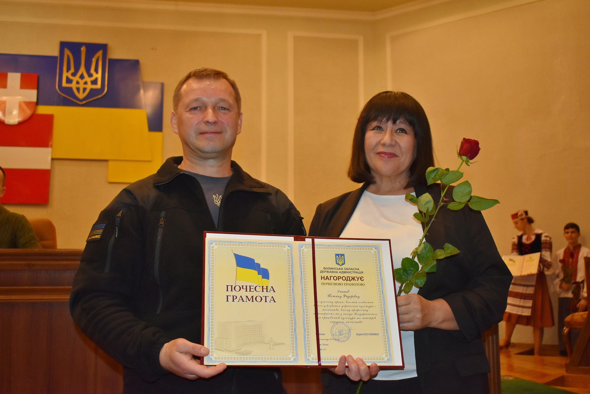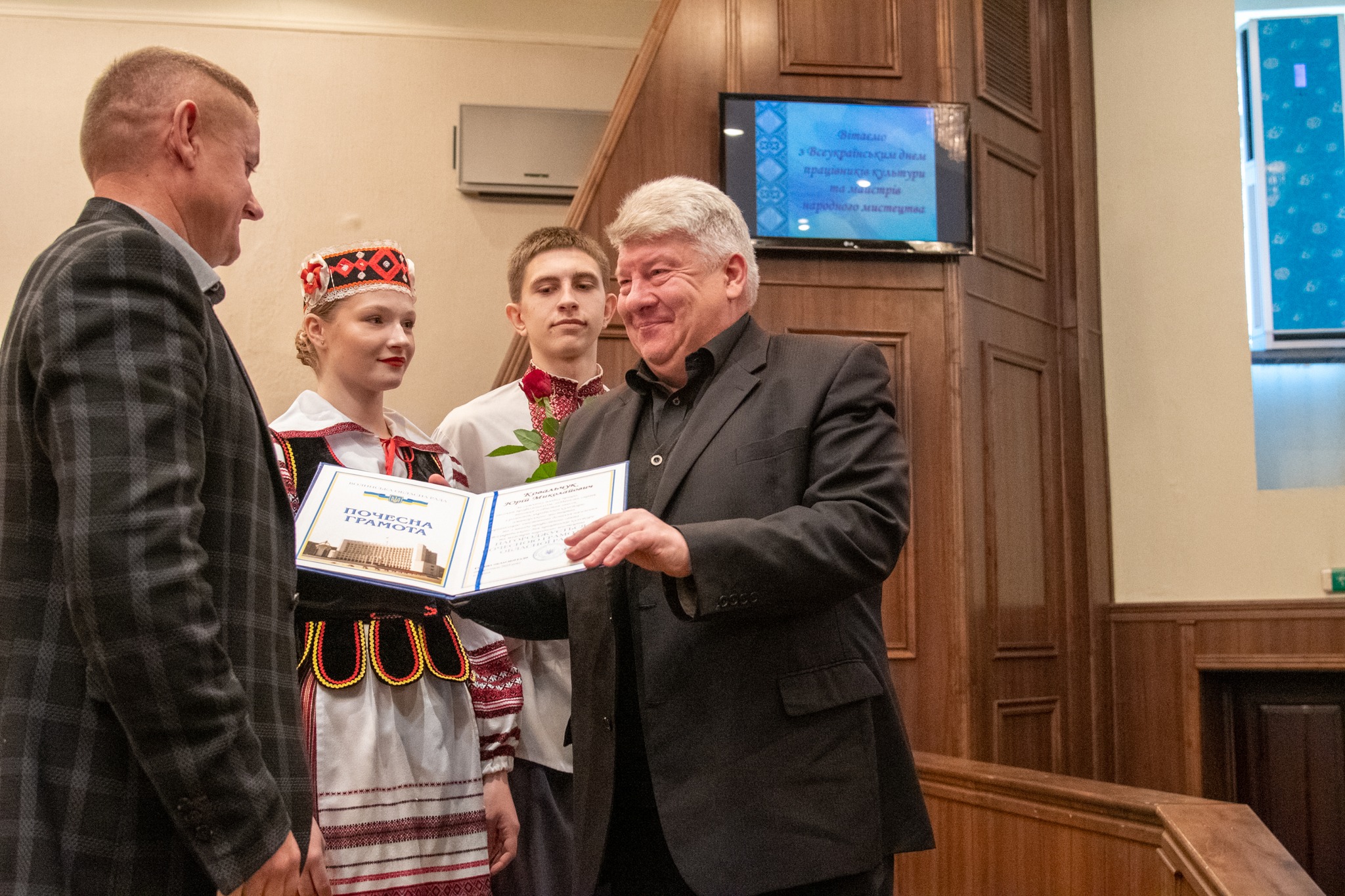 «Сьогодні ми свідомі того, що саме відмінність культурних традицій ідентифікує нас як українську націю. Творчість цілого народу піднімає бойовий дух та надихає на перемогу. Тож нехай творча наснага, професійний успіх і любов до своєї роботи ніколи не покидають вас. Від усього серця бажаю вам добра, здоров’я, благополуччя, щастя, миру і звісно, нам усім, перемоги», – привітав працівників культури Юрій Гупало та вручив Почесні грамоти облдержадміністрації.