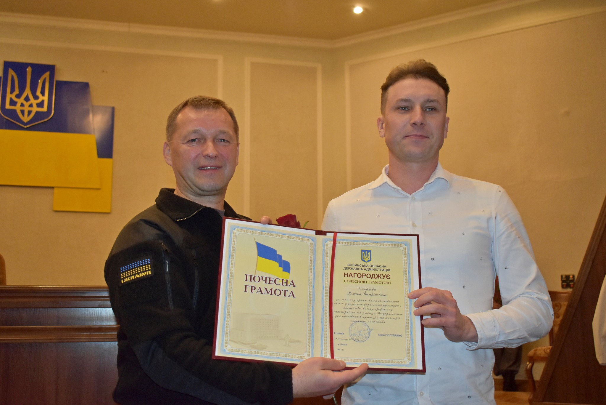 «Передумови для цього сьогодні є. Випробування війною засвідчили виняткову важливість культури. Бо культура – це не лише ідентичність, це також спосіб мислення, вчинки, ментальність і цінності, крізь призму яких ми сприймаємо навколишній світ і людей у ньому. Усім, хто тримає культурний фронт зичу міцного здоров’я, родинного благополуччя, здійснення творчих і професійних задумів і переможного миру для нашої країни», – висловив він побажання. Юрій Поліщук також нагородив грамотами і подяками голови Волиньради кращих професіоналів та аматорів культурно-мистецької галузі.