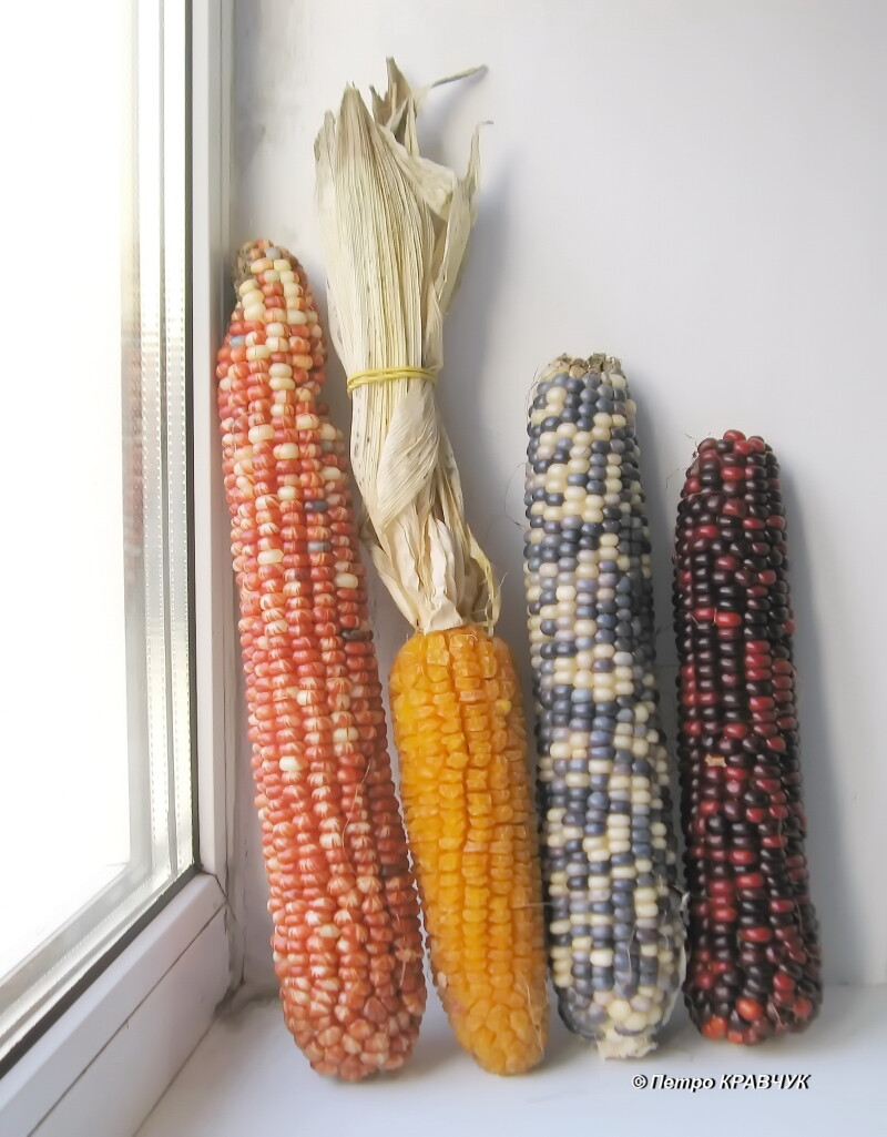 одному качані можуть поєднуватися зерна різних кольорів і відтінків. Насіння