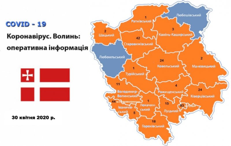 випадків COVID-19: м.Луцьк (4), Луцький район (2), Ківерцівський район (1),